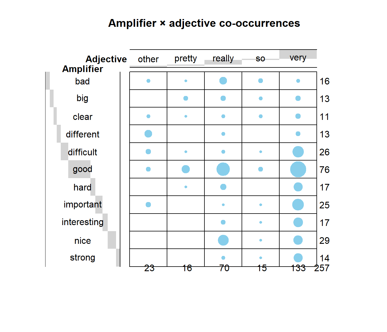 Correspondence analysis | Categorical (contingency table) | Biplot of row-column associations | Collocation and co-occurrence patterns; register × feature associations |