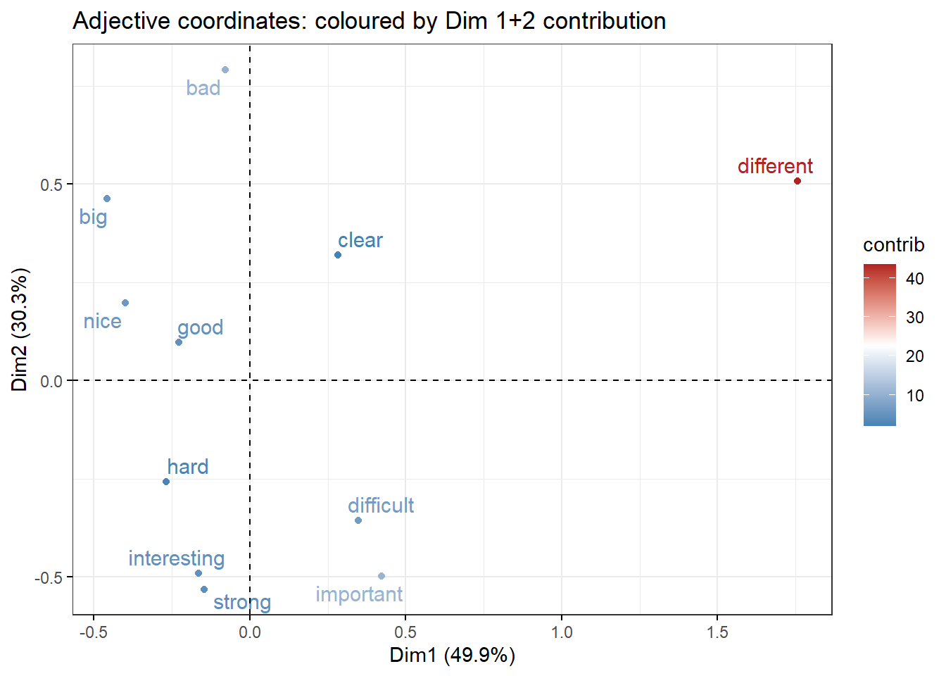 "% | Dim 2: ", round(eig_l2[2,2], 1), "% of inertia"))