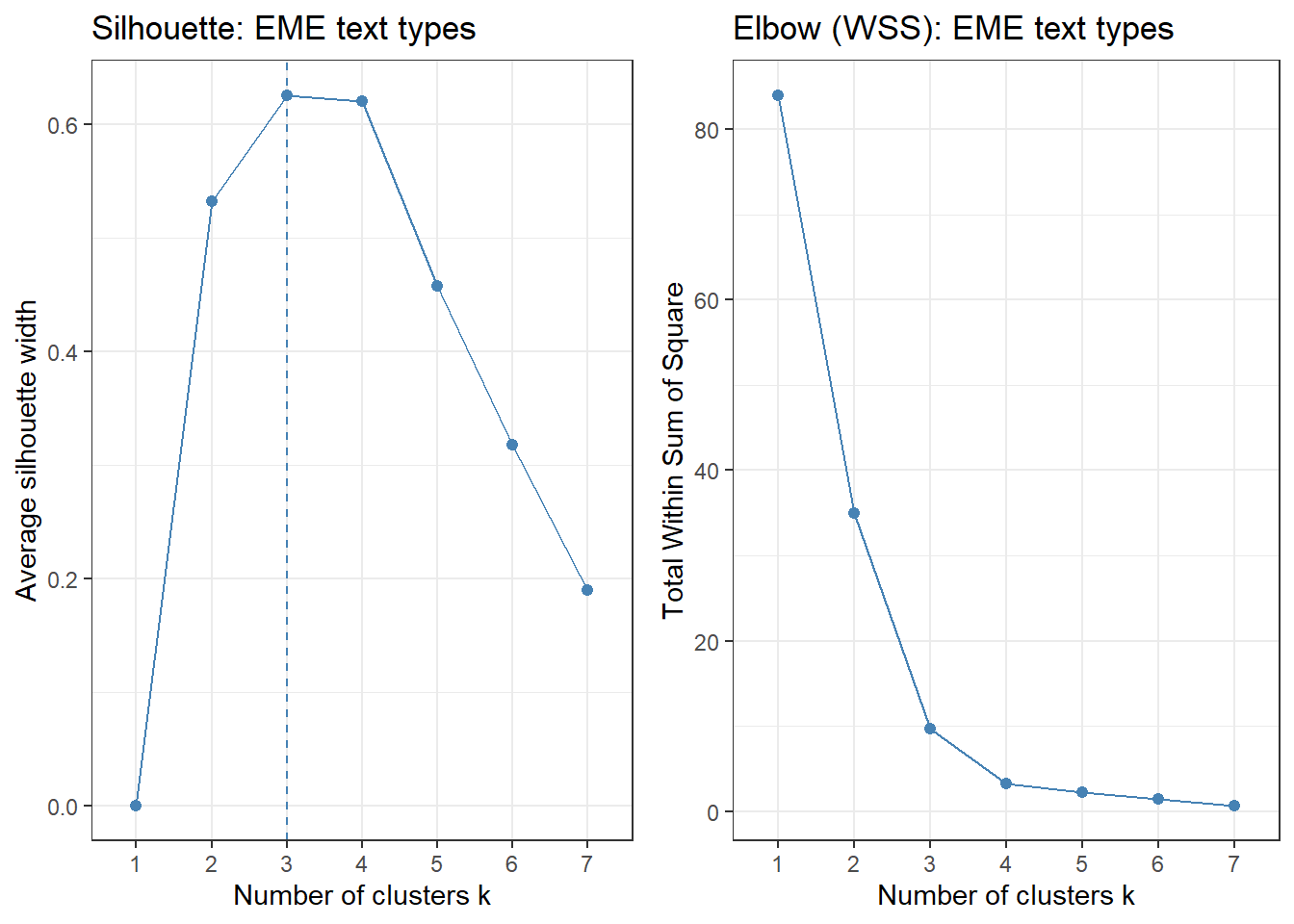 The tutorial is aimed at intermediate users of R. It showcases how to perform and visualise the results of hierarchical cluster analysis, k-means clustering, and correspondence analysis, and how to validate and interpret the results. The aim is not to provide an exhaustive theoretical treatment but to give practical guidance grounded in linguistic examples. For deeper theoretical coverage, see Kassambara (2017) (highly recommended), King (2015), Kettenring (2006), Romesburg (2004), and Blashfield and Aldenderfer (1988).