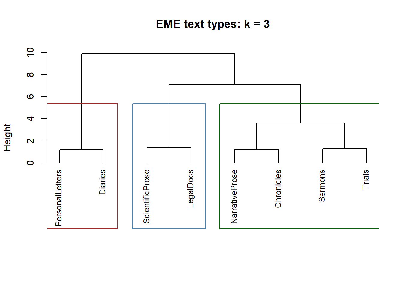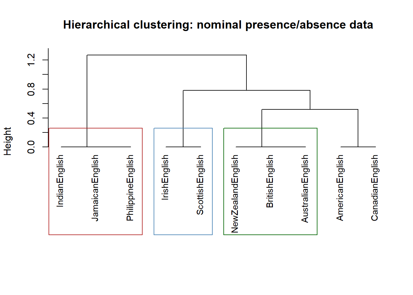 For linguists, unsupervised classification is relevant across many subfields: in historical linguistics, cluster analyses reveal genealogical relationships among languages or dialects based on shared features; in sociolinguistics, they identify groups of speakers with similar repertoires; in lexicology and semantics, they group words or constructions by distributional similarity; in corpus linguistics, they organise texts or registers by co-occurrence patterns.