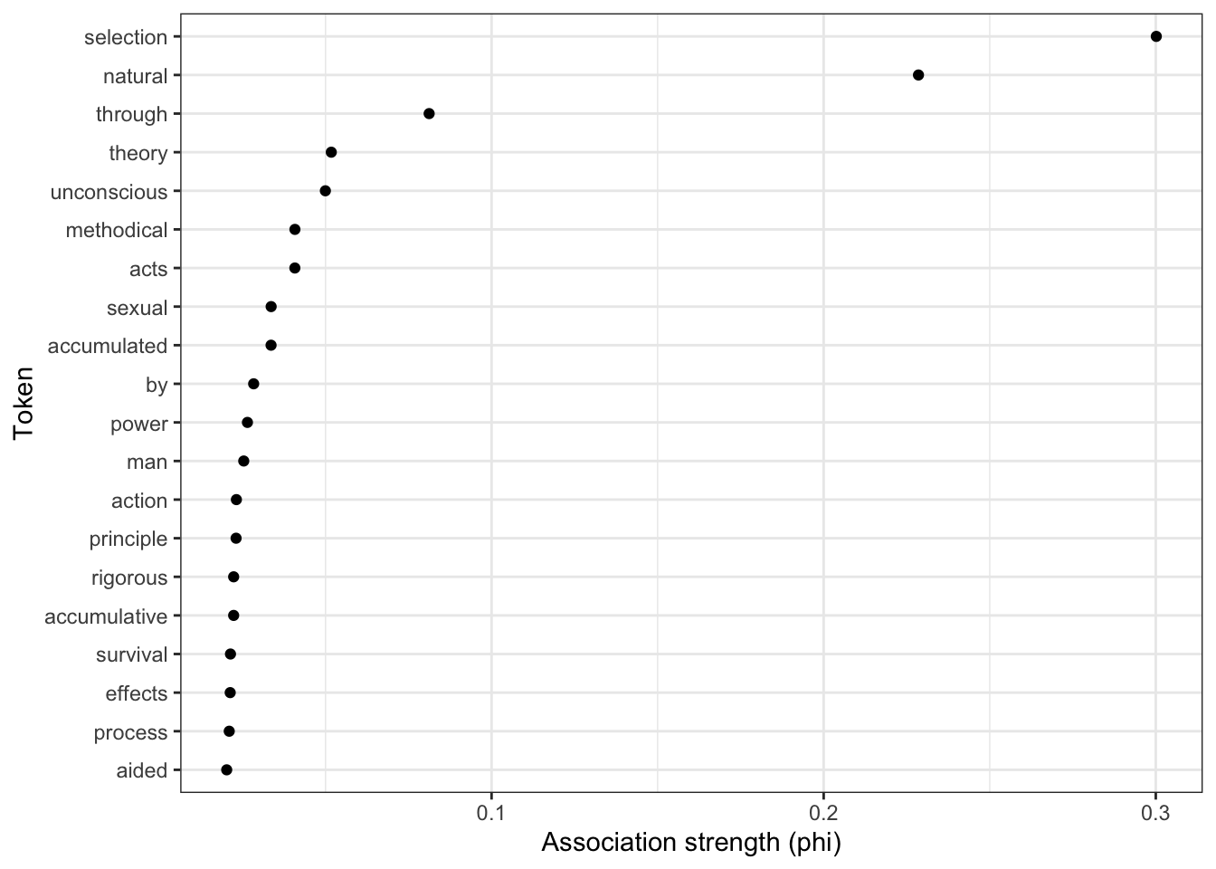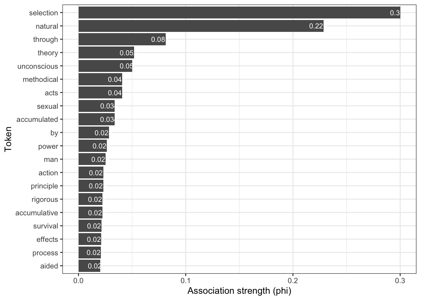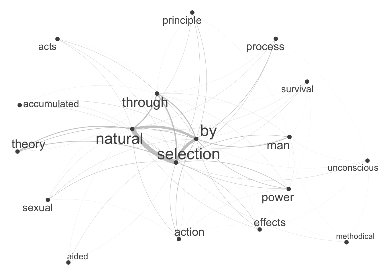 In the following, we will extract collocations from the sentences in Charles Darwin’s On the Origin of Species by Means of Natural Selection
