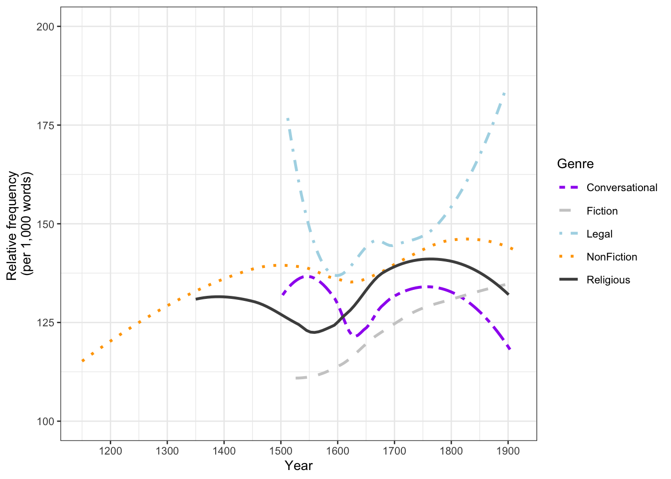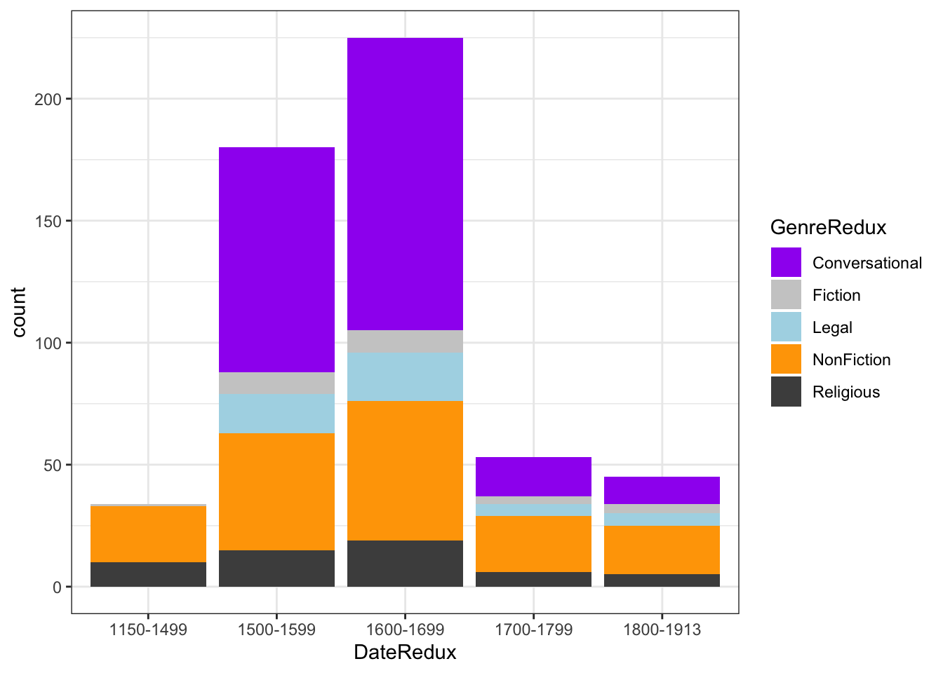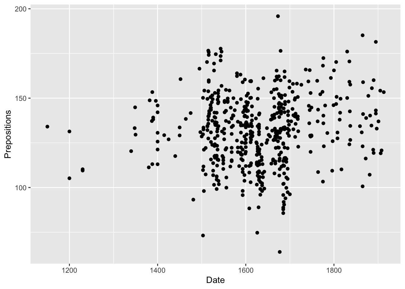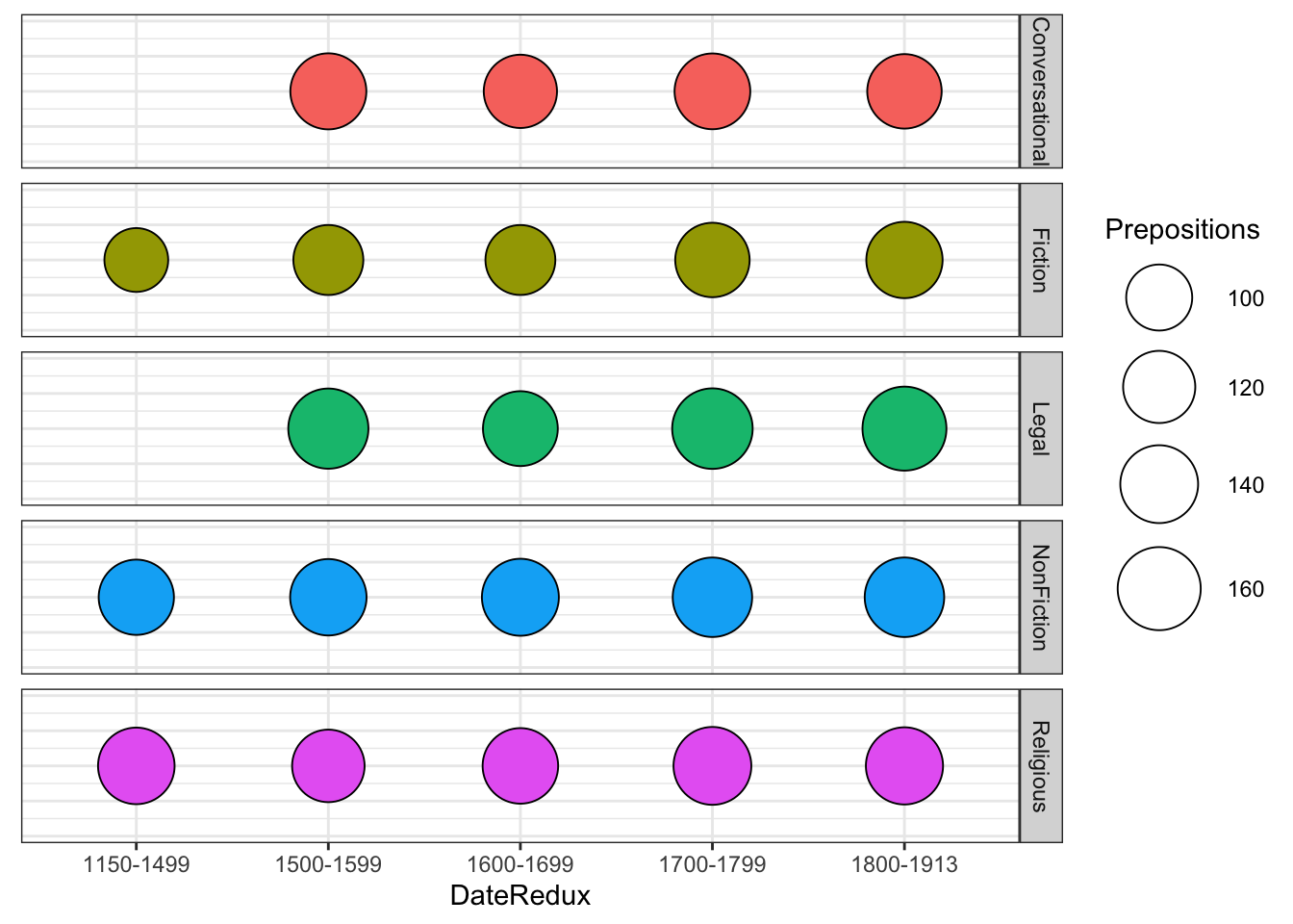 Date | Genre | Text | Prepositions | Region | GenreRedux | DateRedux |