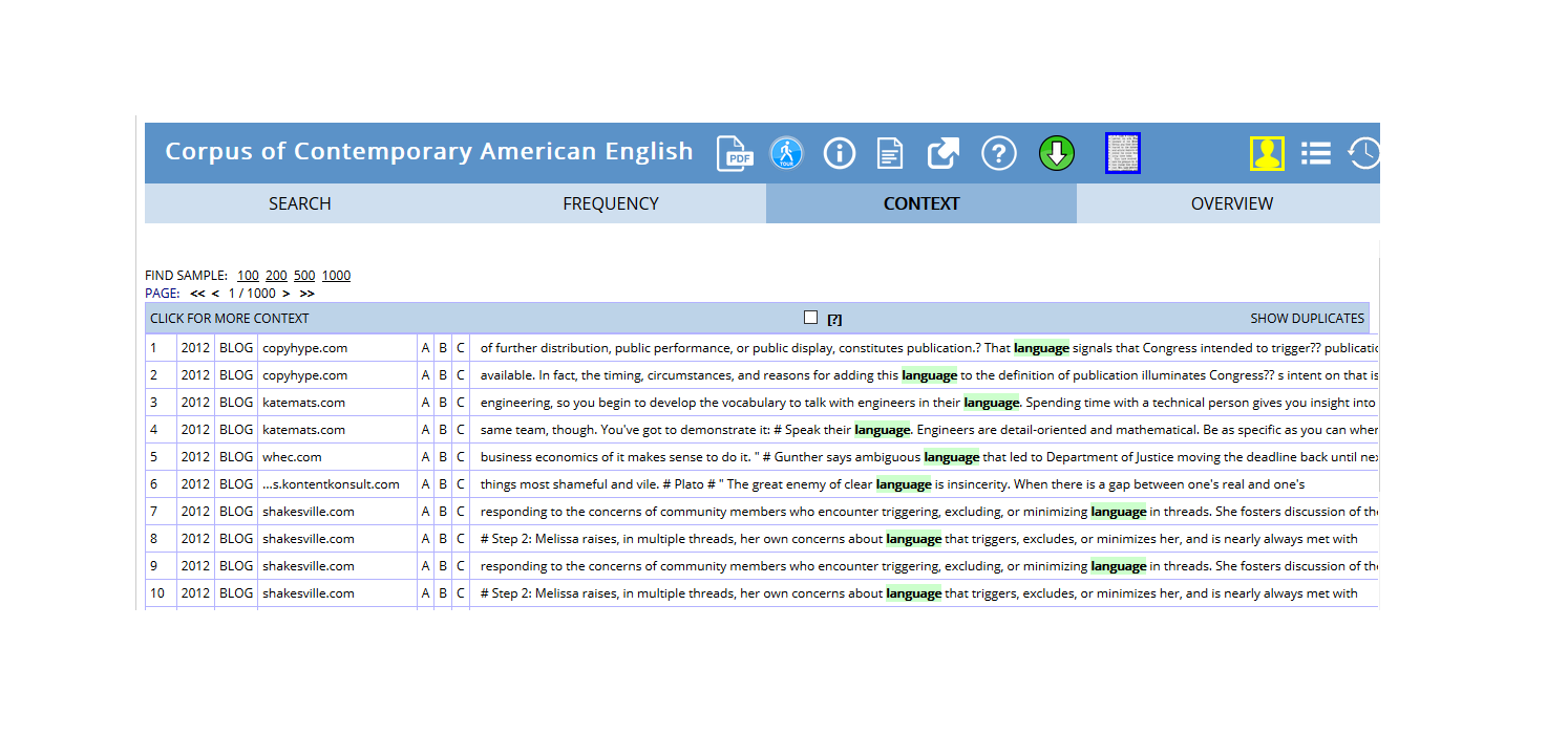 Typically, the extracted words or phrases are displayed through keyword-in-context displays (KWICs), where the search term—also referred to as the node word—is showcased within its surrounding context, containing both preceding and following words. The power of this display format lies in its ability to present multiple instances of a word simultaneously, allowing patterns to emerge that would be impossible to detect through traditional close reading alone.