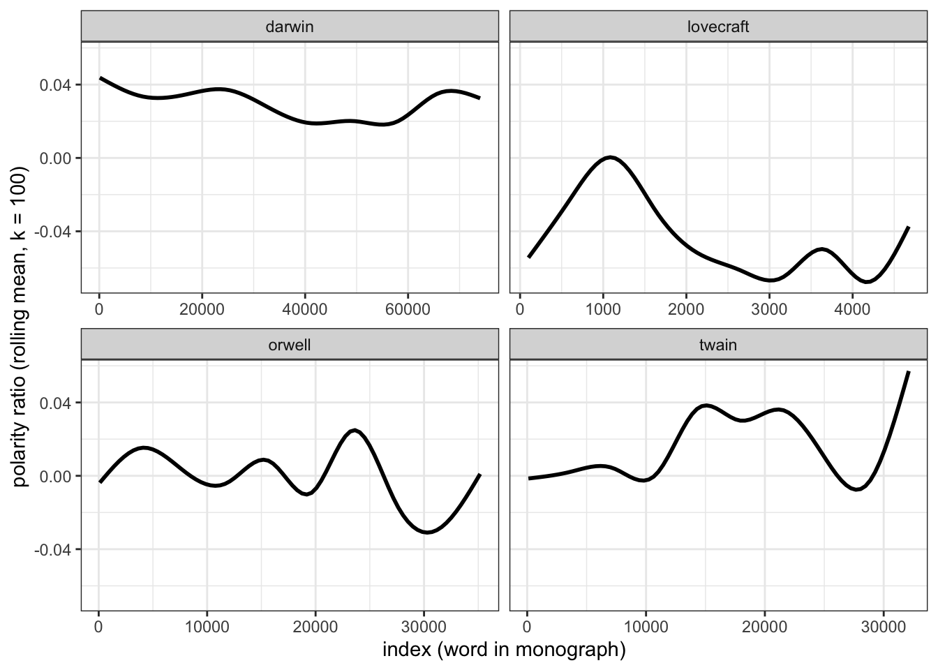 novels_anno <- rbind(darwin_clean, twain_clean, orwell_clean, lovecraft_clean) %>%