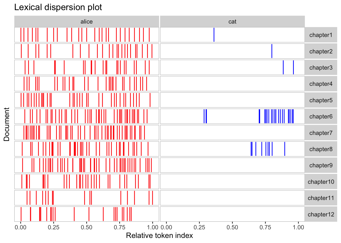To begin, we’ll create KWICs for the term alice using the kwic function from the quanteda package, as demonstrated below.