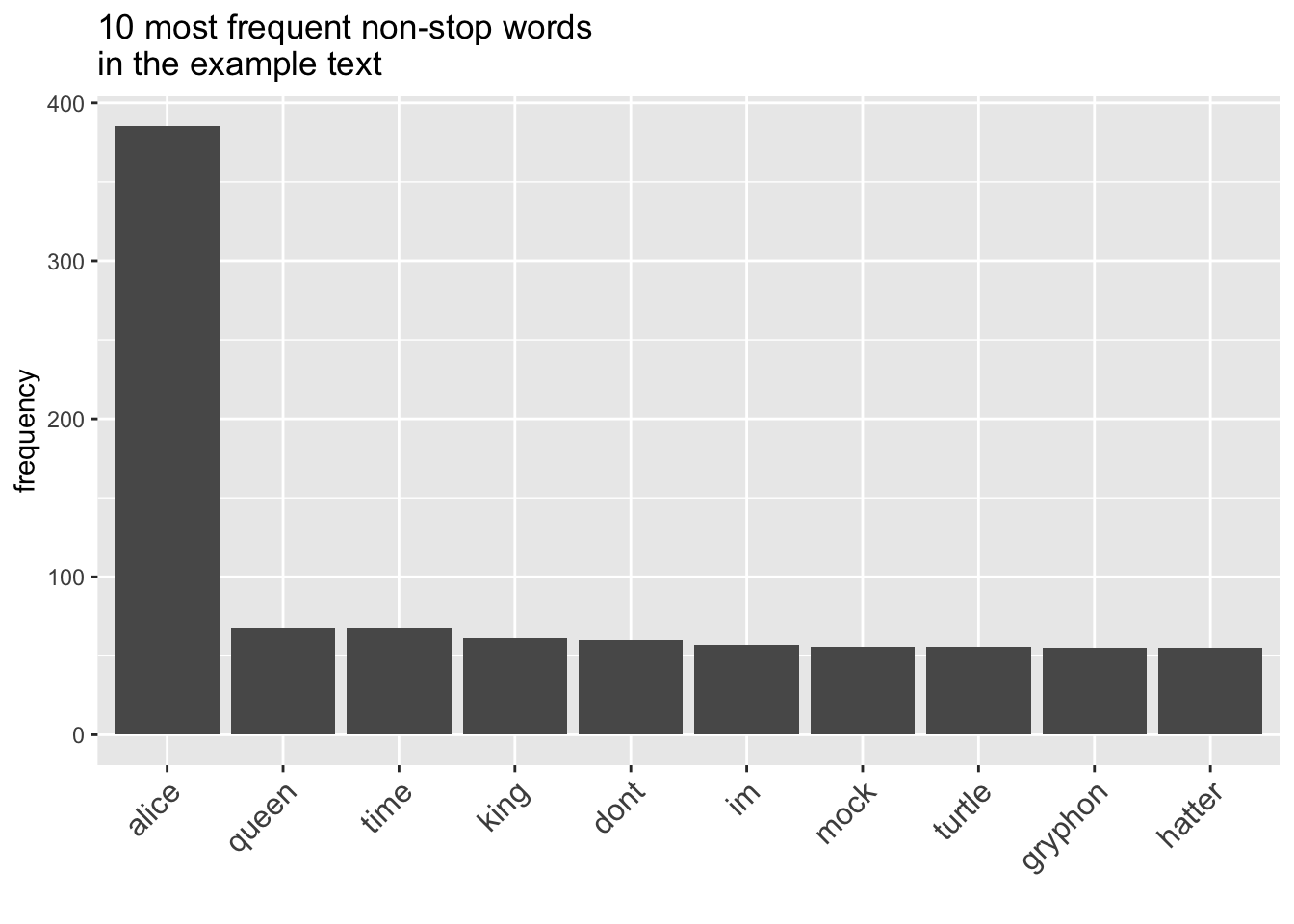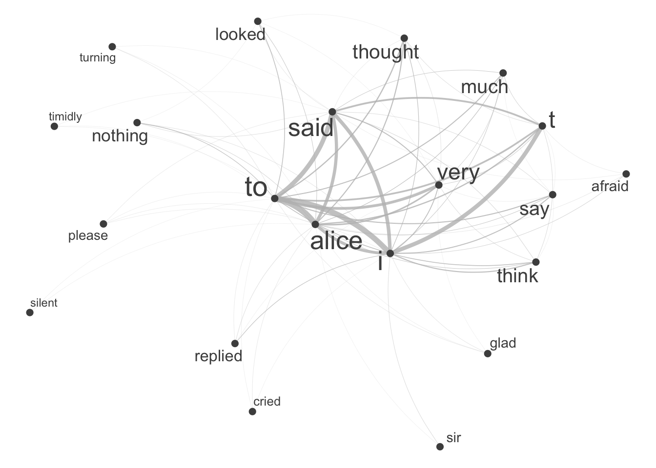 In the following section, we’ll use R to explore text, using Lewis Carroll’s Alice’s Adventures in Wonderland as our example text. We’ll start by loading the text data, which is available from the LADAL GitHub repository for this tutorial. If you’re interested in loading your own data, you can refer to this tutorial.