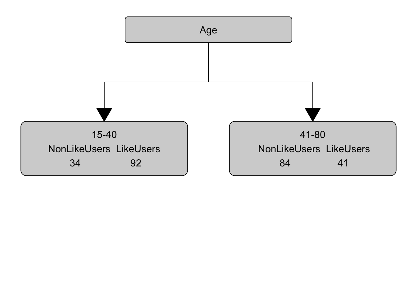 Let us now go over the process by which the decision tree above is generated. In our example, we want to predict whether a person makes use of discourse like given their age, gender, and social status.