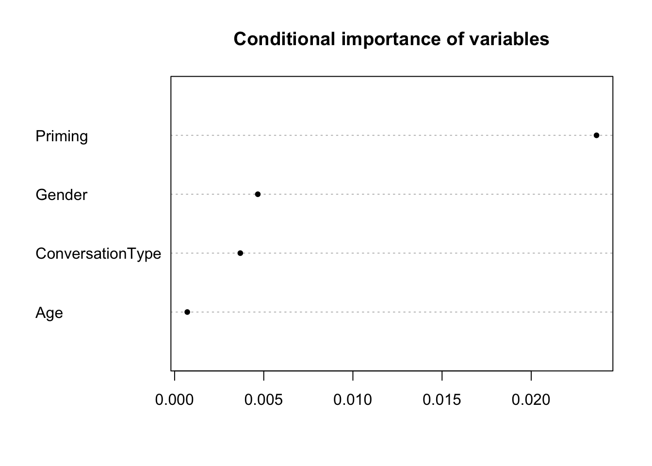 getConfirmedFormula(boruta2)really ~ Adjective + FileSpeaker + Function + ConversationType +