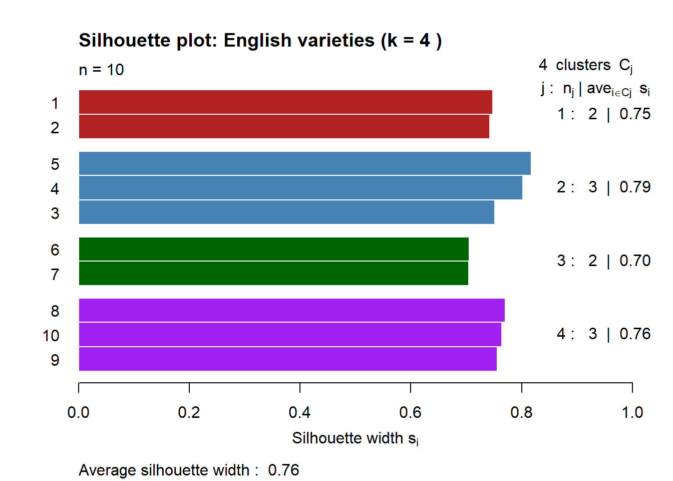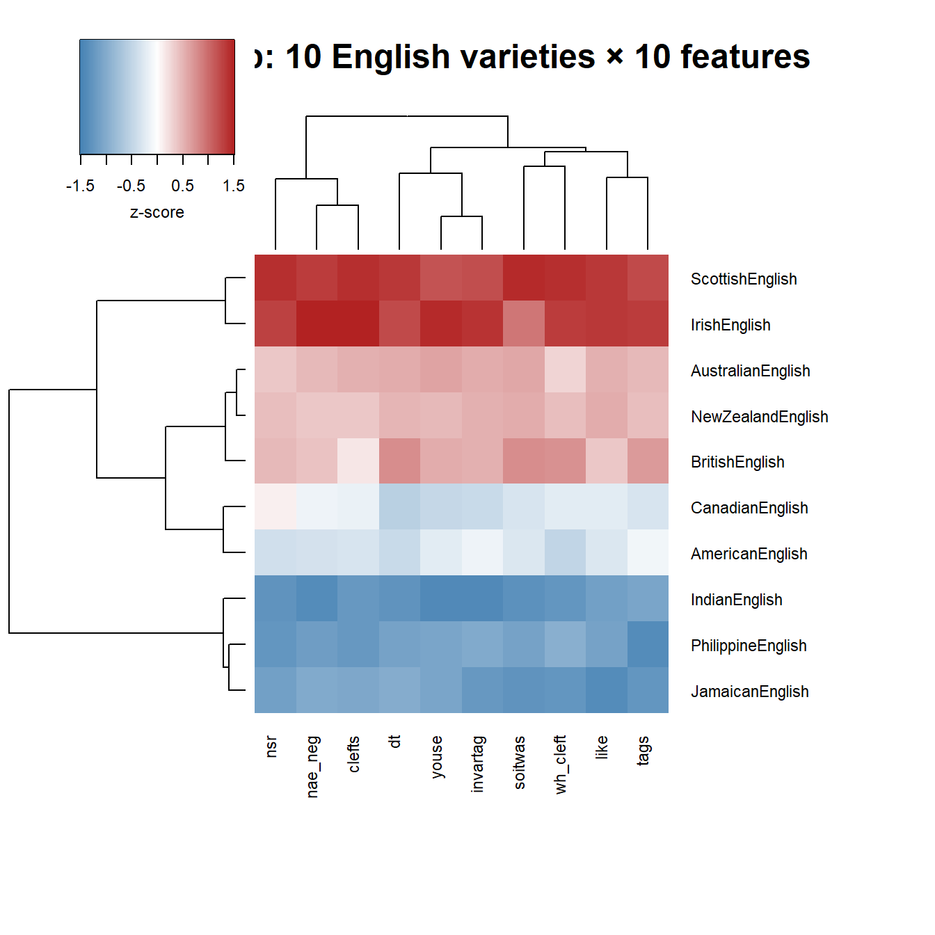 For linguists, unsupervised classification is relevant across many subfields: in historical linguistics, cluster analyses reveal genealogical relationships among languages or dialects based on shared features; in sociolinguistics, they identify groups of speakers with similar repertoires; in lexicology and semantics, they group words or constructions by distributional similarity; in corpus linguistics, they organise texts or registers by co-occurrence patterns.