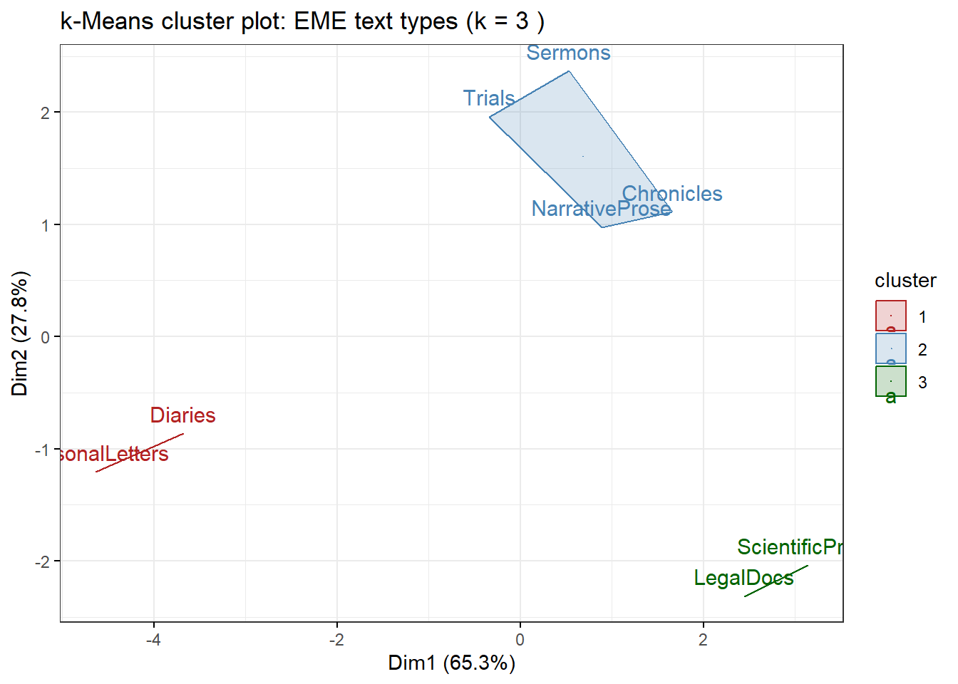 Best linguistic use case | Dialect/language typology; EME register; exploratory analysis | Large-scale text clustering; speaker segmentation; confirmation of HCA | Amplifier/collocation patterns; L2 error profiles; register × feature associations |
