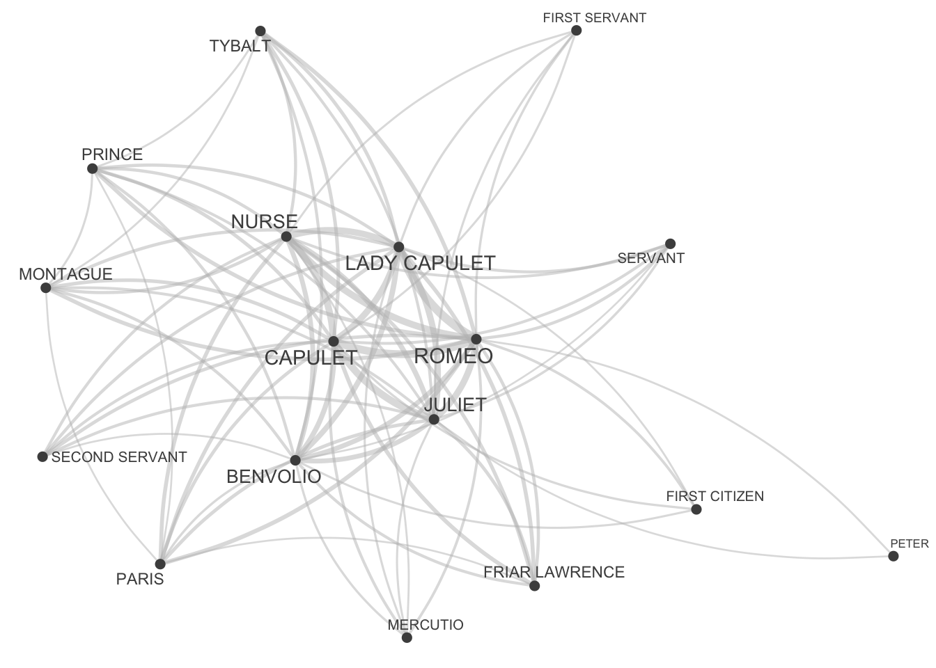 The data shows how often a character has appeared with each other character in the play - only Friar Lawrence and Friar John were excluded because they only appear in one scene where they talk to each other.