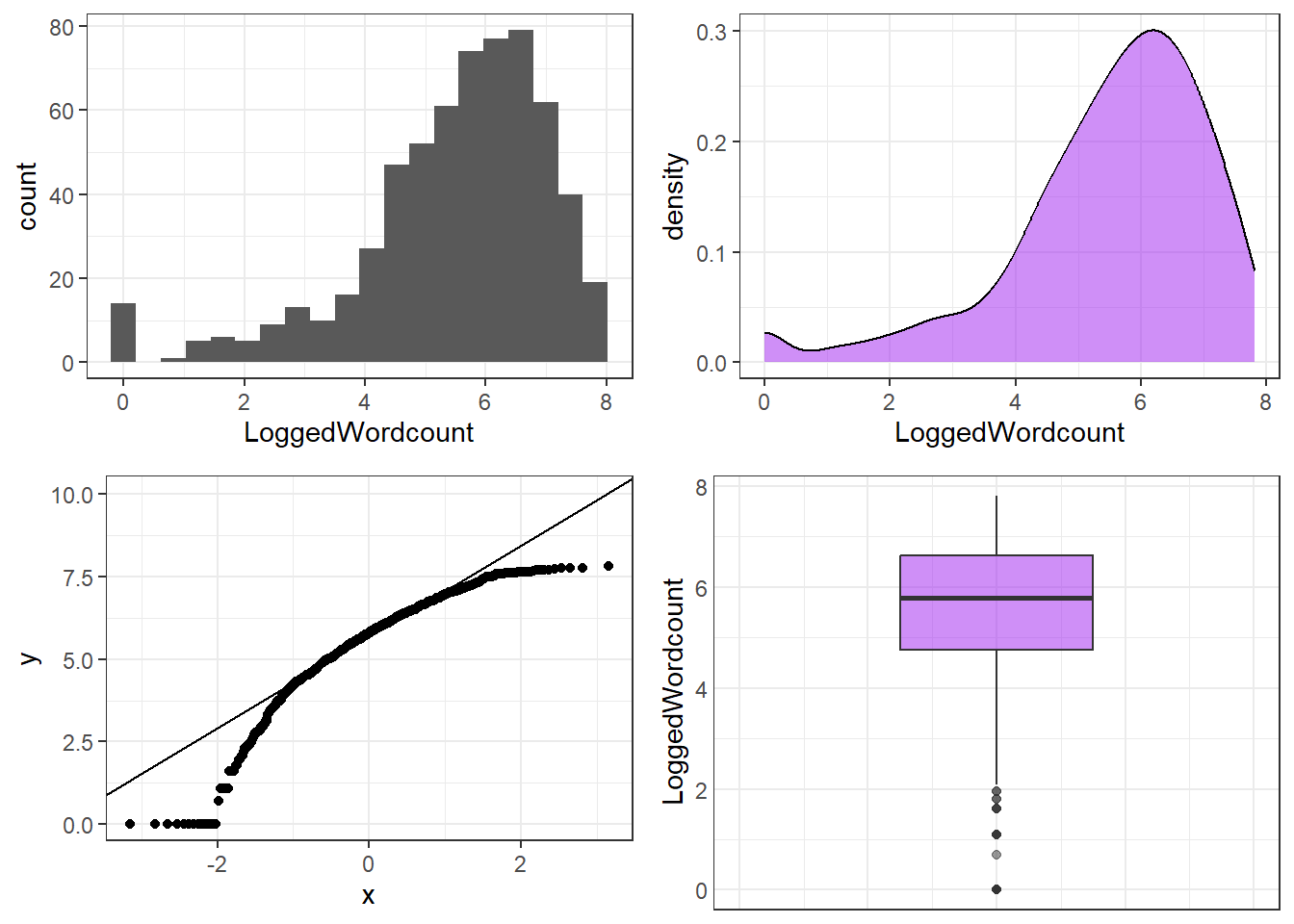 | Right-skewed with zeros | Log + 1 | log1p(x) |