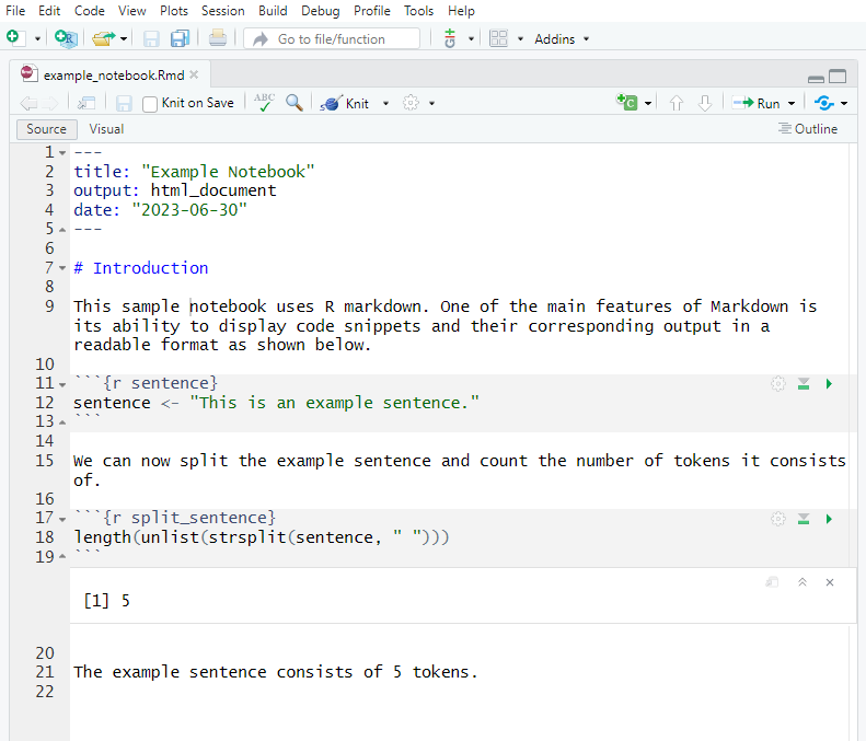 R Markdown (.Rmd) is the original notebook format for R, stable and widely used. Quarto (.qmd) is its successor — it supports R, Python, Julia, and Observable JS in the same document, has a cleaner syntax, and is the format used by all LADAL tutorials. If you are starting fresh, use Quarto. If you have existing R Markdown files, they continue to work and do not need to be converted.