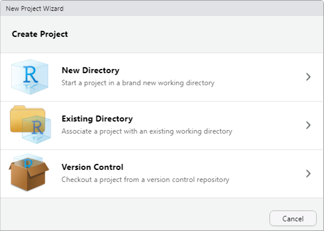 Create a new R Project for each distinct research project or analysis. Never work across projects by navigating to different folders with setwd(). Each project should be fully self-contained: opening the .Rproj file should be sufficient to reproduce the entire analysis.