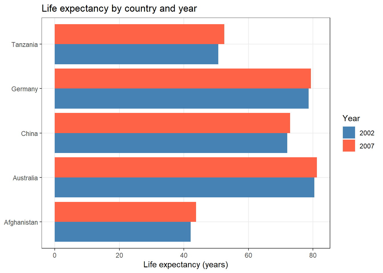 x = NULL, y = "Life expectancy (years)", fill = "Year")