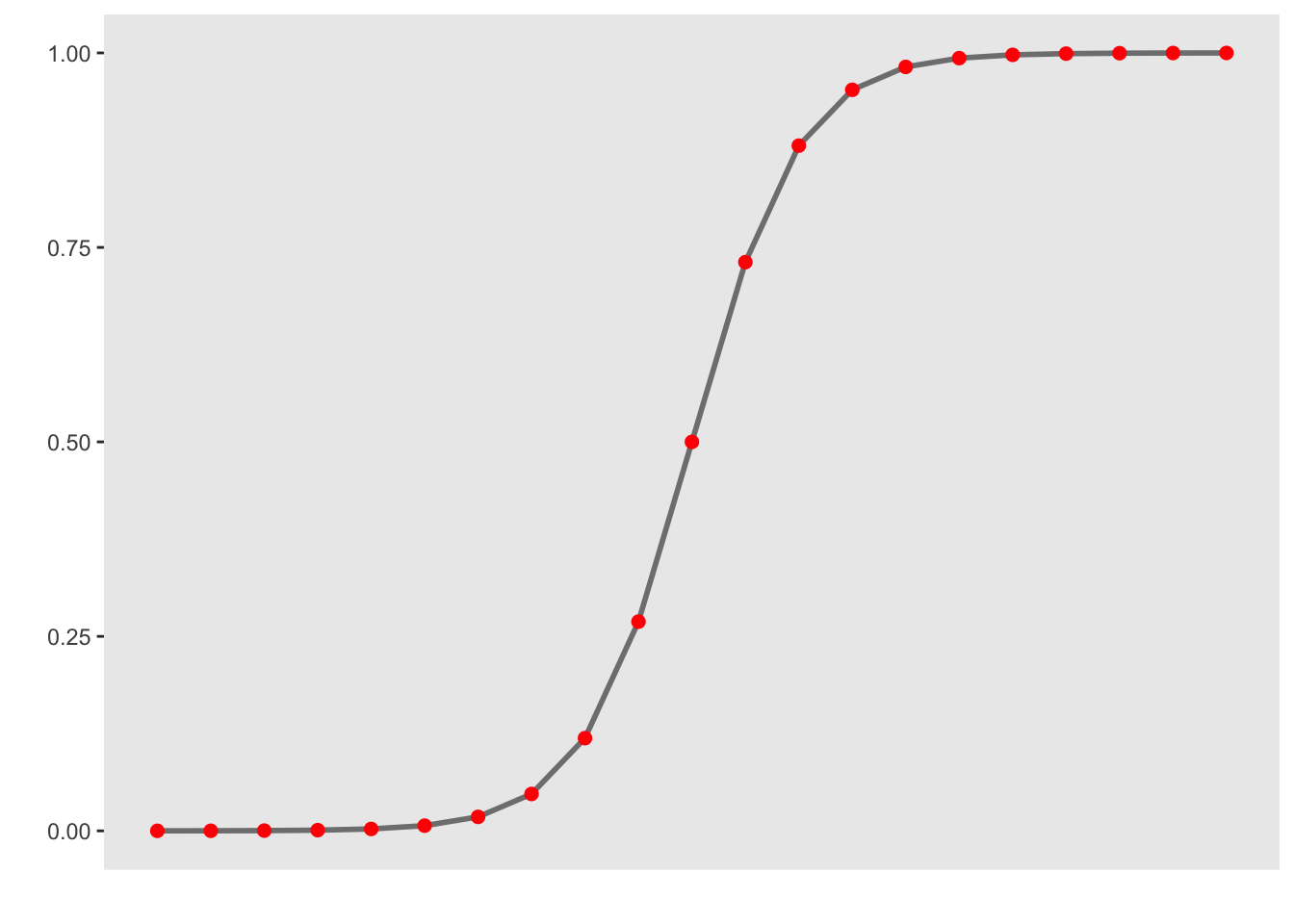Number of Fisher Scoring iterations: 2To estimate how much some weights who is 180cm tall, we would multiply the coefficient (slope of the line) with 180 (\(x\)) and add the value of the intercept (point where line crosses the \(y\)-axis). If we plug in the numbers from the regression model below, we get