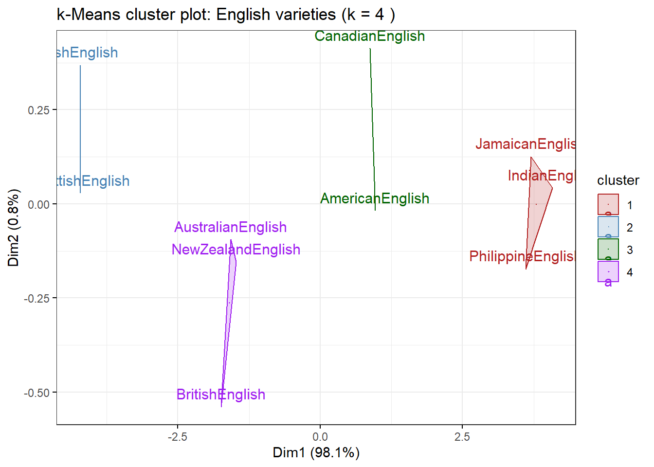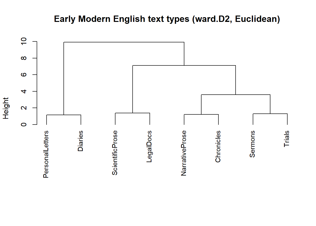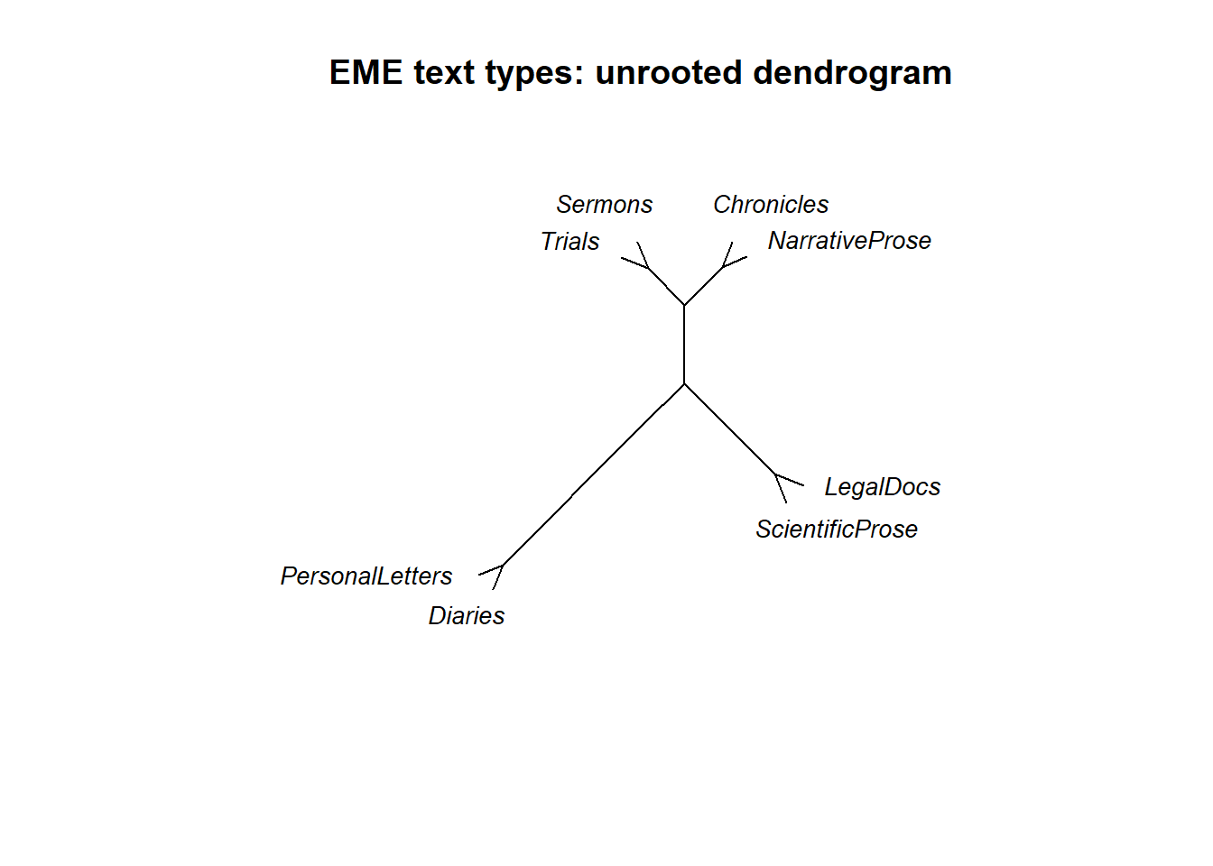 For linguists, unsupervised classification is relevant across many subfields: in historical linguistics, cluster analyses reveal genealogical relationships among languages or dialects based on shared features; in sociolinguistics, they identify groups of speakers with similar repertoires; in lexicology and semantics, they group words or constructions by distributional similarity; in corpus linguistics, they organise texts or registers by co-occurrence patterns.