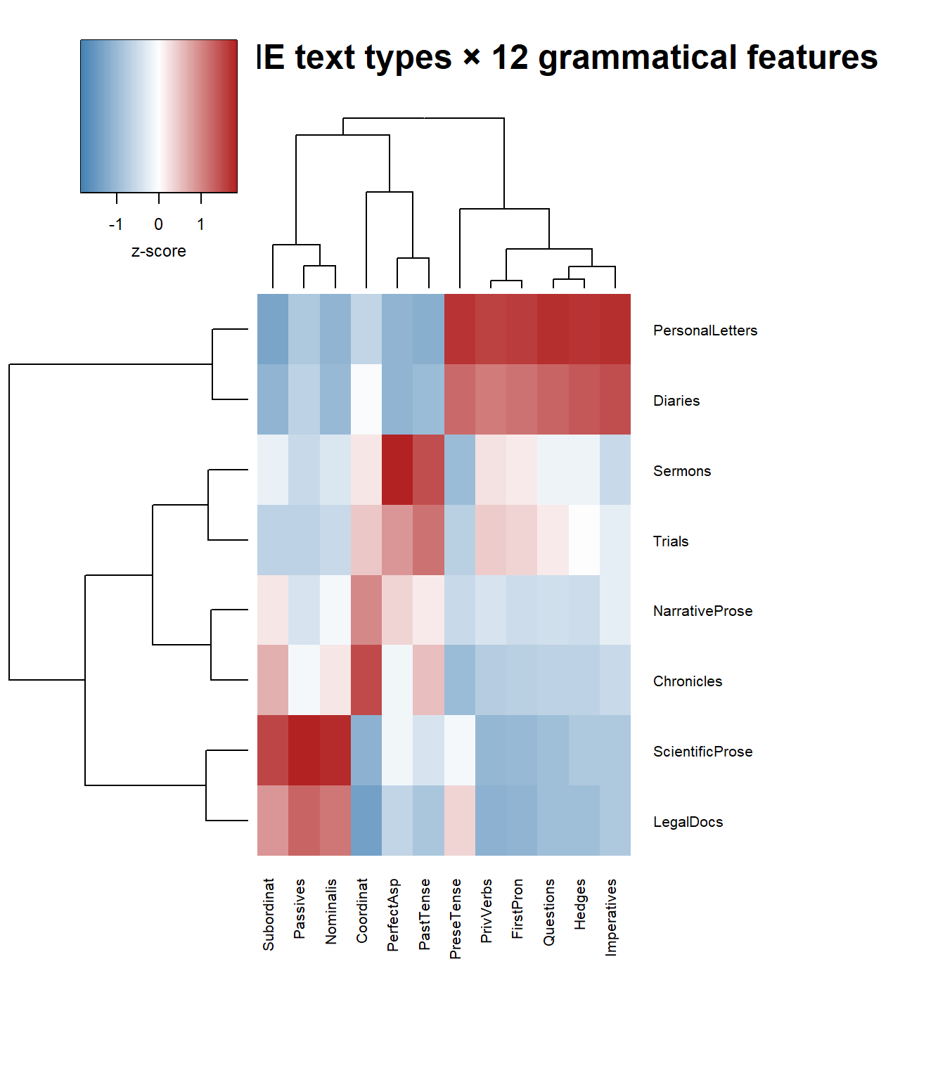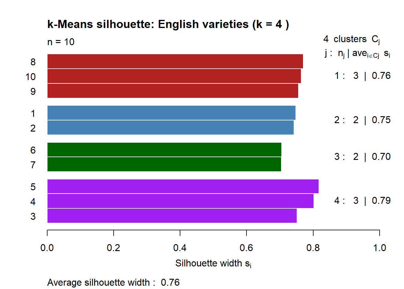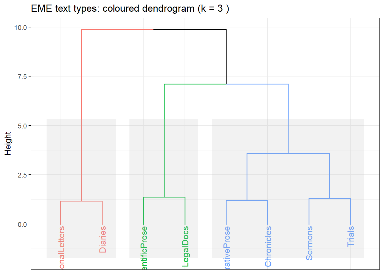 For linguists, unsupervised classification is relevant across many subfields: in historical linguistics, cluster analyses reveal genealogical relationships among languages or dialects based on shared features; in sociolinguistics, they identify groups of speakers with similar repertoires; in lexicology and semantics, they group words or constructions by distributional similarity; in corpus linguistics, they organise texts or registers by co-occurrence patterns.