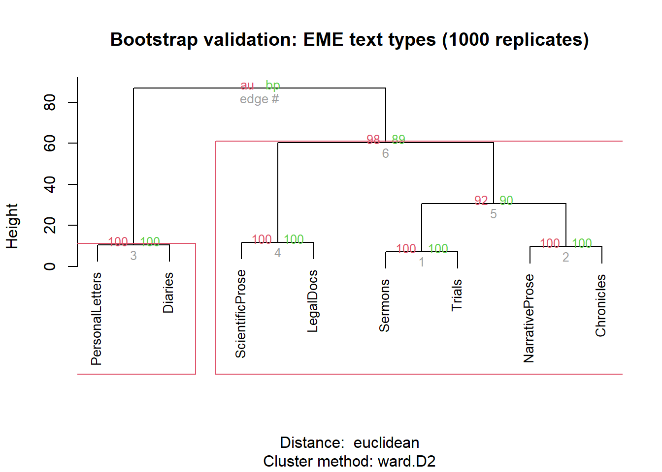 Best linguistic use case | Dialect/language typology; EME register; exploratory analysis | Large-scale text clustering; speaker segmentation; confirmation of HCA | Amplifier/collocation patterns; L2 error profiles; register × feature associations |