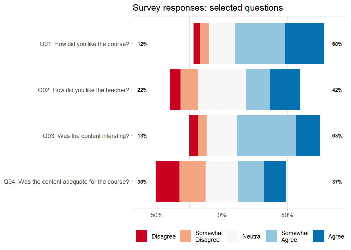 Visualise Likert scale survey data using grouped bar plots and gglikert