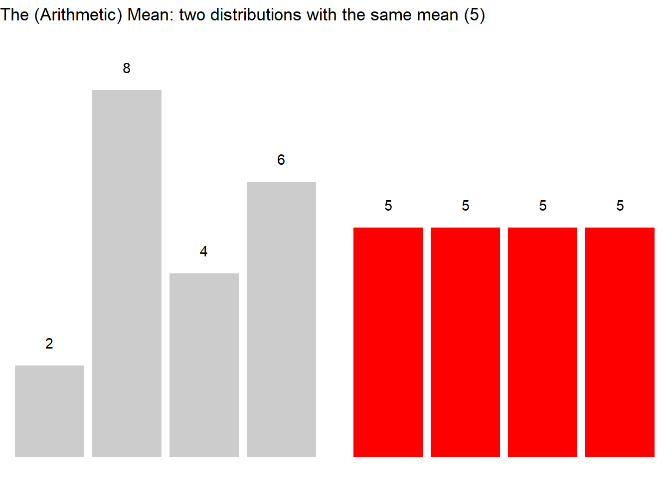 Note: Both distributions above have a mean of 5, but their shapes are very different. This illustrates that the mean alone does not fully describe a distribution — measures of variability are also essential.