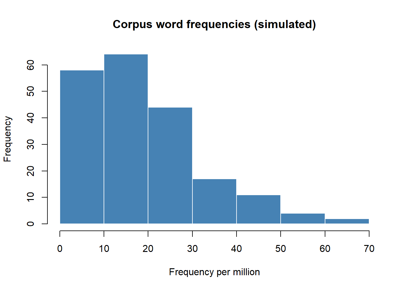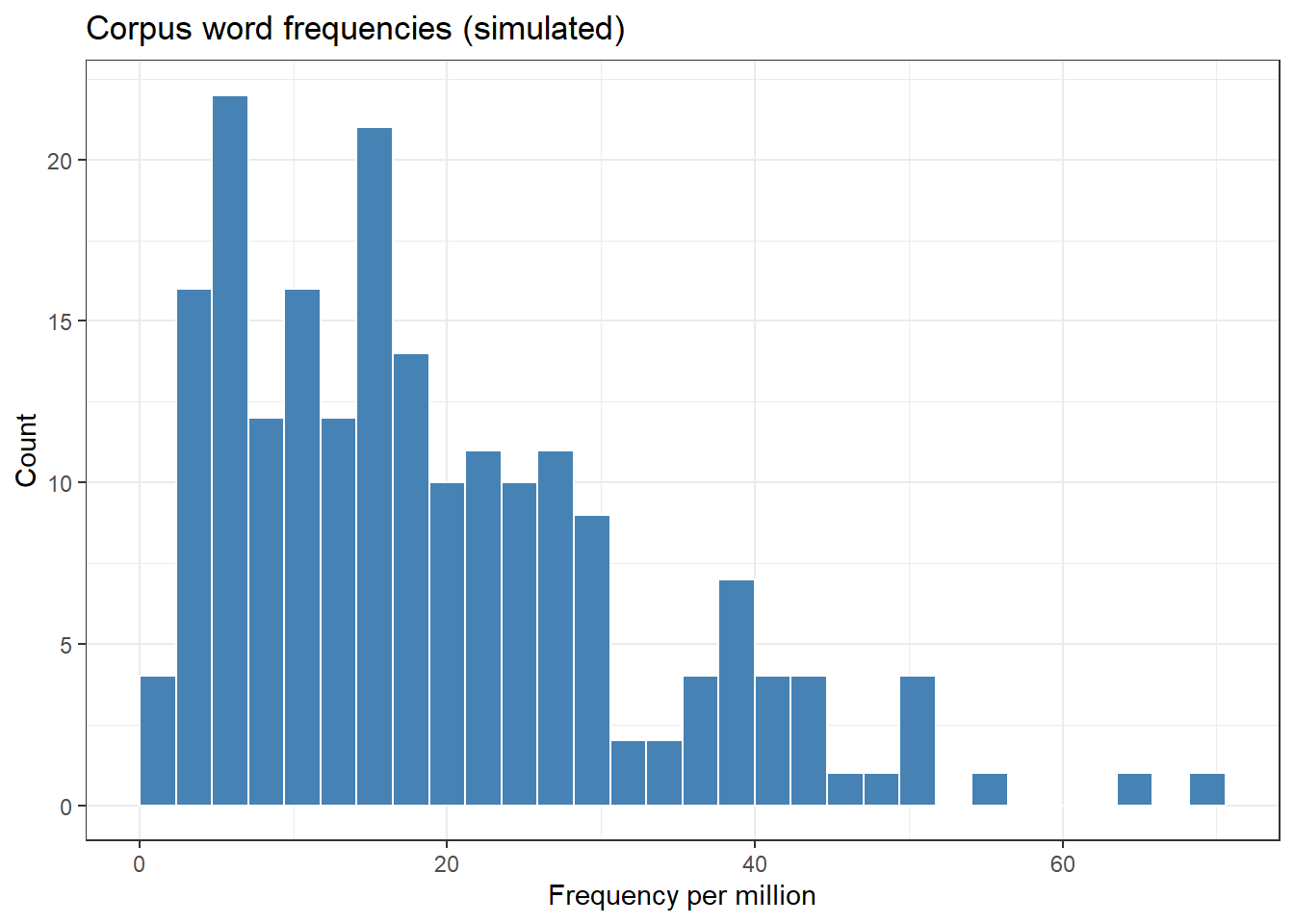 In corpus linguistics, frequency data is almost always right-skewed: a few very frequent items dominate. The median is therefore often more informative than the mean for frequency distributions.