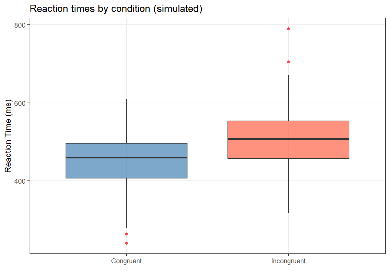 # using effectsize package if (!requireNamespace("effectsize", quietly =TRUE)) { install.packages("effectsize") } library(effectsize) effectsize::cohens_d(rt_incong, rt_cong)