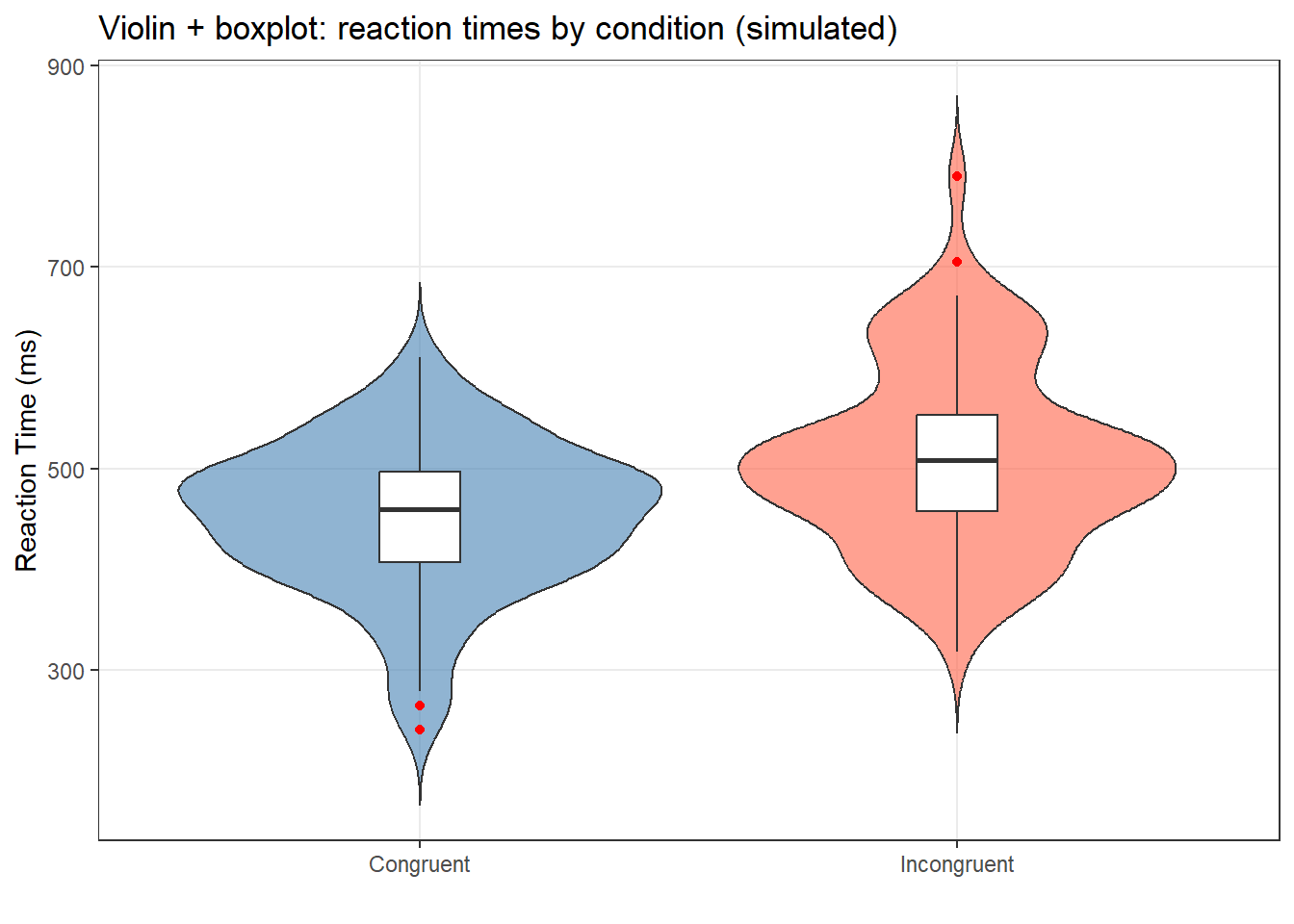 Reaction times were recorded for 60 participants (30 per condition). In the congruent condition, mean RT was M = 442 ms (SD = 74 ms, Mdn = 431 ms); in the incongruent condition, M = 518 ms (SD = 88 ms, Mdn = 504 ms). RT distributions in both conditions were approximately normal (Shapiro-Wilk: congruent W = 0.97, p = .43; incongruent W = 0.96, p = .29), and no outliers were identified (all values within ±3 SD of the group mean). Four participants were excluded prior to analysis due to error rates exceeding 30%.