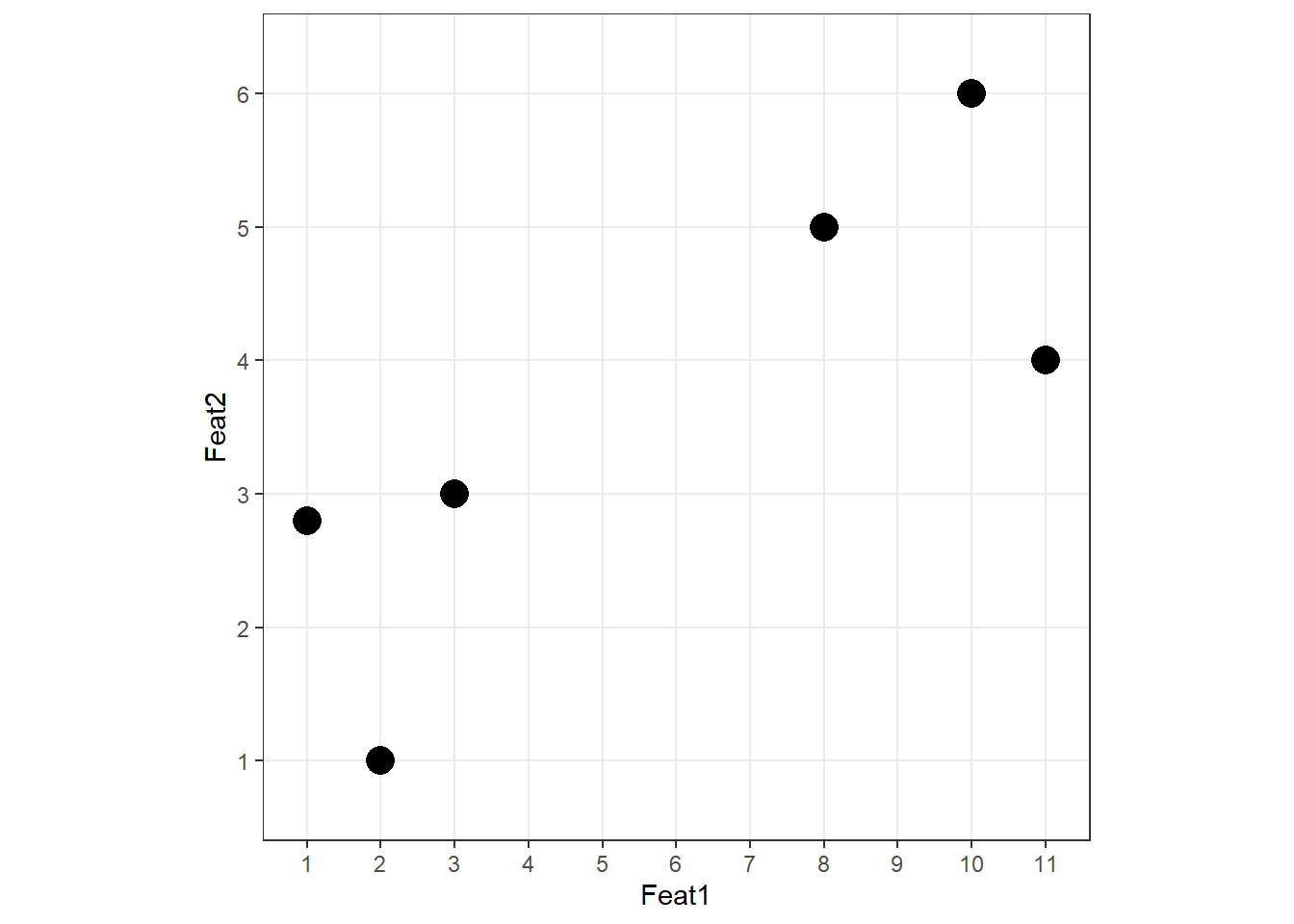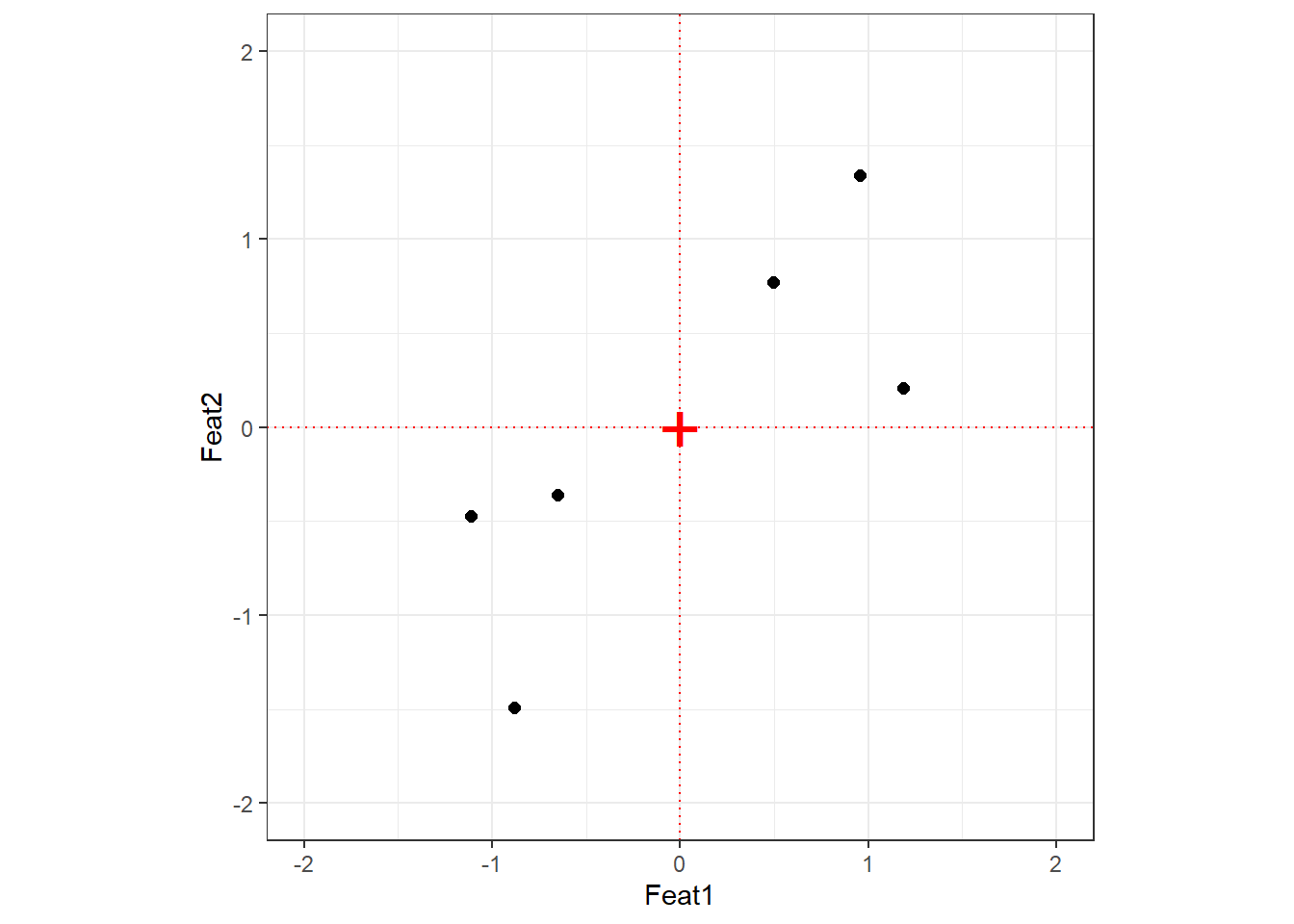 Let us work through a minimal example with just two features and six language observations to build intuition.