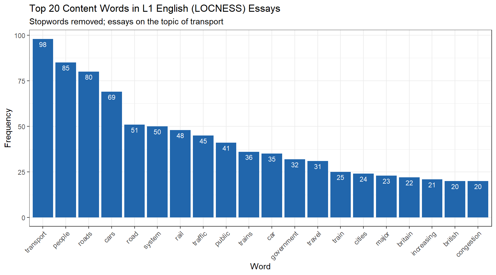 Both corpora were compiled by the Centre for English Corpus Linguistics (CECL) at the Université catholique de Louvain, Belgium. The essays in this tutorial deal with the topic of transport, which is one of the prompt topics common to both ICLE and LOCNESS, enabling direct comparison between learner and native-speaker production on the same task.
