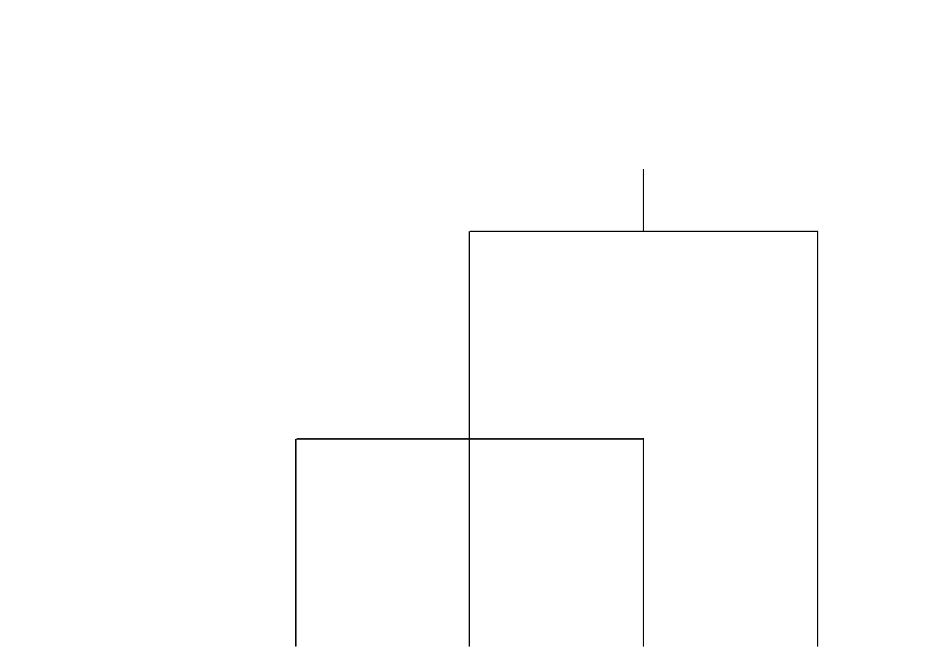 my_tree <- ape::read.tree(text = my_newick)We can plot the tree using R’s plot() function (which by default plots trees horizontally, following biological convention):