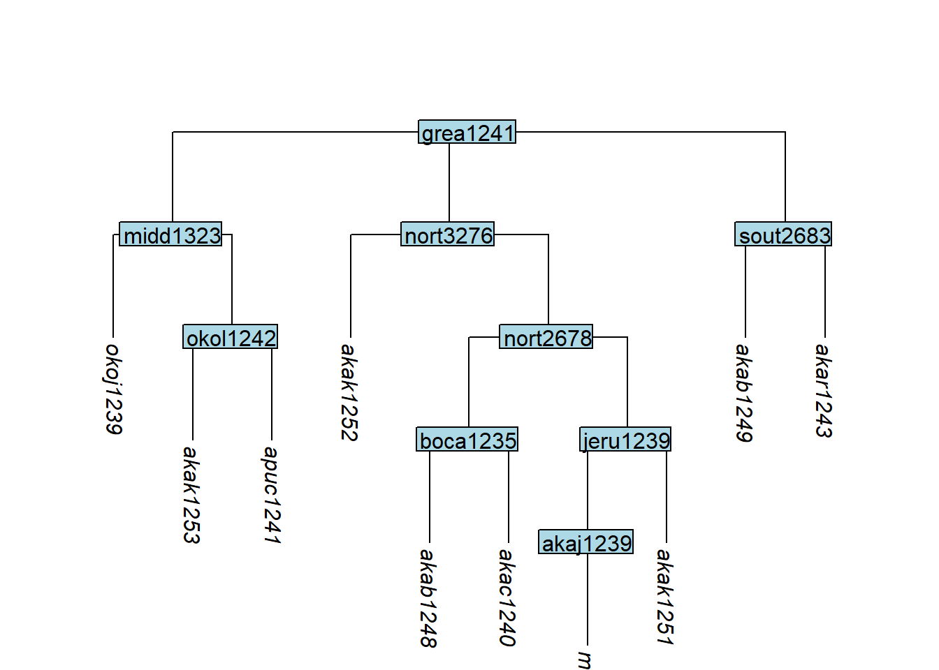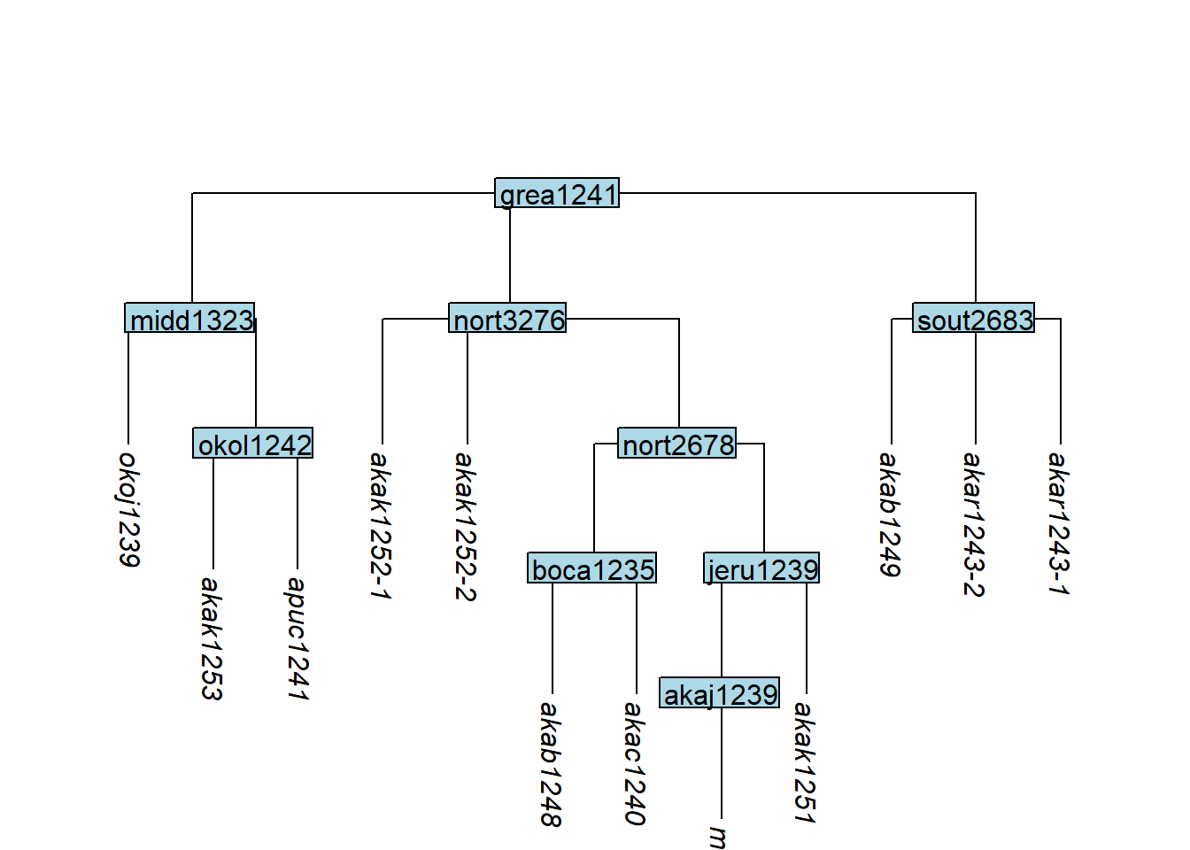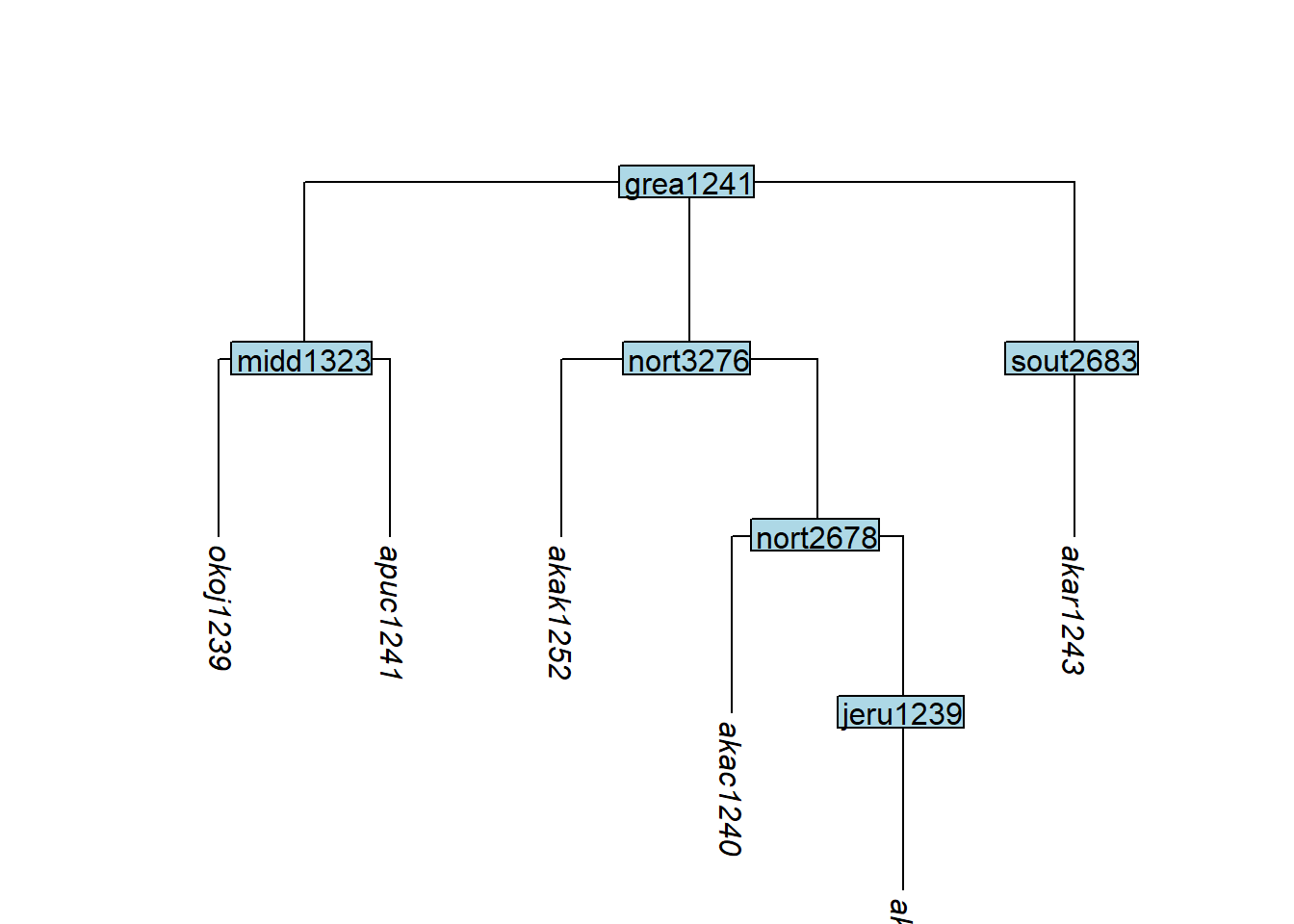 INSTALL_opts = c("--no-multiarch"))The packages require an internet connection on first install. Once installed, all glottolog data is bundled locally and no internet connection is needed to run the tutorial.
