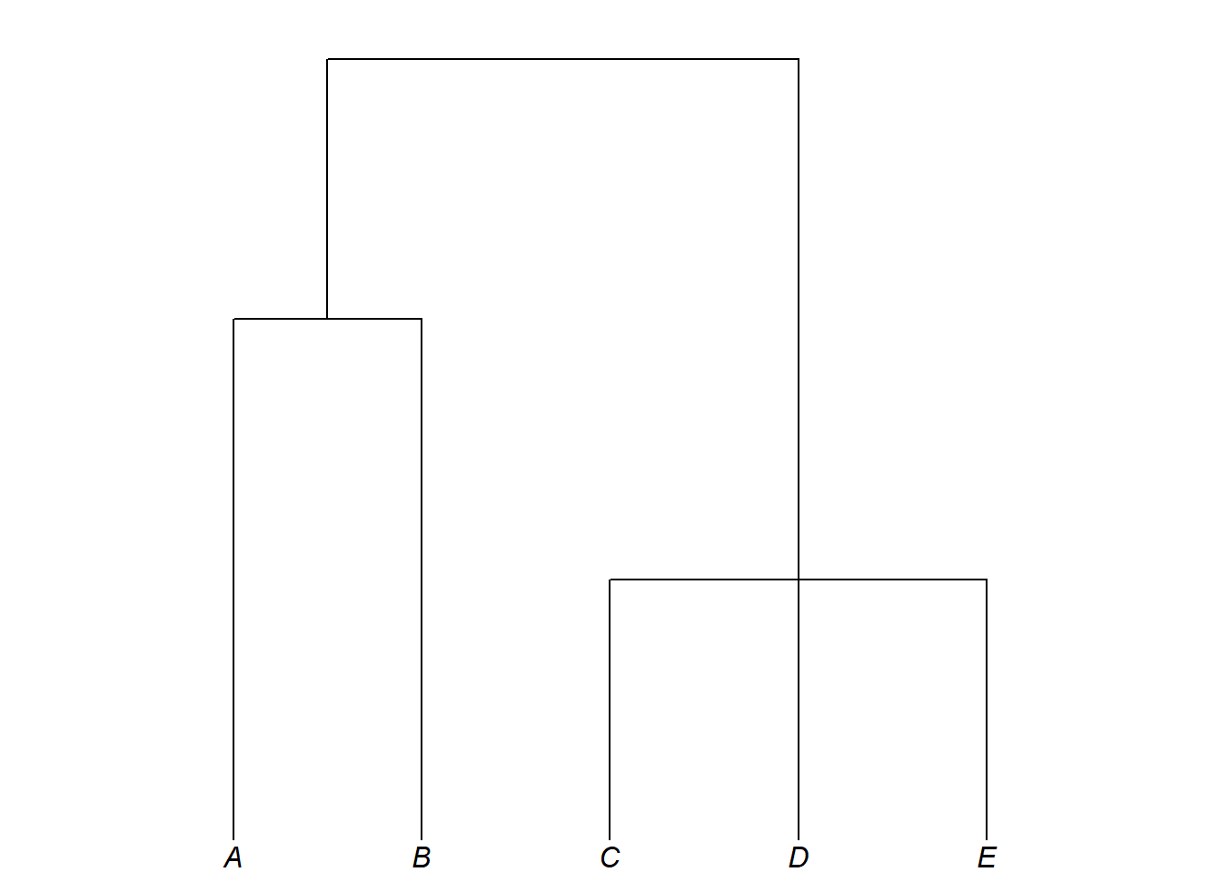 newick_b <- "((A:2,B:2):1,(C:1,D:1,E:1):2);"