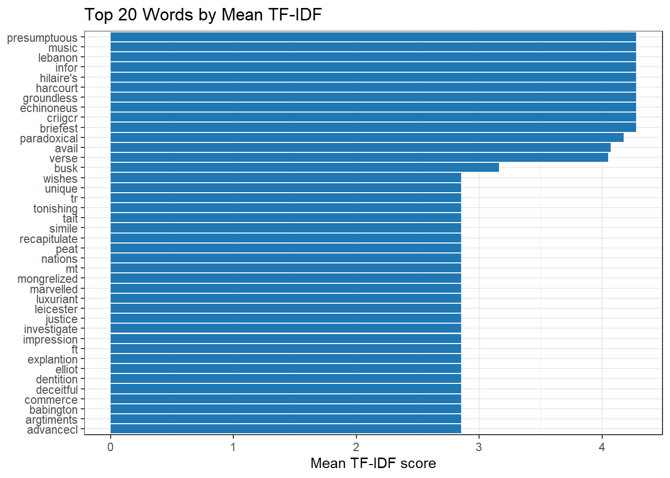 "tidytext", # TF-IDF scoring